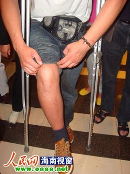 圖3:李金紅向記者展示自己受傷的腿。 航空公司半天聯系不上 由于眾旅客情緒比較激動,?诿捞m國際機場地服人員李先生建議他們到機場協商解決,眾旅客便乘坐機場大巴于14時30分到達?诿捞m機場,旅客代表趙先生向機場方面提出了旅客們的要求:1、得到合理的物質和精神損失賠償,2、盡快安排班機飛往西安。機場方面表示盡快聯系金鹿航空公司,讓其派代表前來協商解決。 機場工作人員一開始稱10分鐘以后將來人解決問題,但一直等了很久也不見人來,而機場方面聲稱一直在聯系,情緒比較激動的旅客便來到位于安檢口對面的機場派出所內反映情況,民警在了解情況后便同機場方面配合,積極聯系金鹿航空公司。 “我們一直在等,都等了4天了,現在來到機場了他們還在讓我們等,也不知道要等到什么時候。”趙先生說,金鹿航空公司這種避而不見的態度讓他們很失望。 據機場工作人員梁先生介紹,由于金鹿航空公司在海口沒有辦事處,只是委托他們協調解決,但是賠償的問題他們無法做主,需要和對方溝通才行。 圖4:旅客向記者展示自己11月12日的登機卡。 達成賠償條件,每位旅客獲賠200元 在派出所民警的幫助下,旅客找到了金鹿航空公司的投訴電話,他們于15時30分撥打該投訴電話,但一直無人接聽。無人搭理的旅客頓時情緒激動起來,他們向在場的海口美蘭國際機場工作人員討要說法。 15時50分,金鹿航空公司的電話終于接通,該公司在同旅客的溝通中表示,將于15日晚上和16日上午安排別的航空公司的航班分兩批運送這些旅客回西安,但關于賠償的問題金鹿航空公司表示不會賠償。 被滯留4天的旅客頓時沸騰起來,他們堅持要找金鹿航空公司的領導對話,激動的人群一度將?诿捞m國際機場的安檢通道堵住,在10多分鐘的時間內,前來安檢的旅客只能從欄桿的間隔中鉆進安檢通道。 此時,機場工作人員梁先生過來同旅客代表趙先生商議,表示金鹿航空公司愿意對被滯留4天的旅客進行沒人100元的賠償,但眾旅客認為賠償太少,要求航空公司提高賠償標準,雙方最終達成一致:對被滯留的旅客每人賠償200元,分兩批將被滯留的旅客于15日晚和16日上午運回西安。 據機場工作人員梁先生介紹,這批被滯留的旅客共有129人,他們將每人獲賠200元,11月15日晚有50至60人將乘坐其他航空公司的航班返回西安,剩余的旅客將于16日上午乘飛機返回西安。