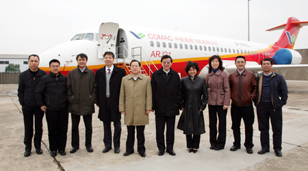 金壯龍總經理與李偉副主任一行在ARJ21-700飛機103架機前合影。
