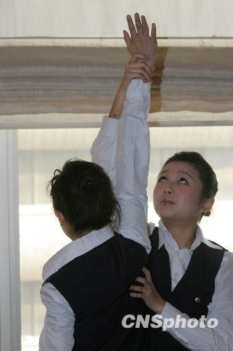圖1:卡塔爾航空公司在武漢招聘空乘人員,全國各地的200余名女青年參加了面試。中新社發(fā) 攝影:孫新明 2010年1月2日,卡塔爾航空公司(Qatar Airways)在武漢招聘空乘人員。當(dāng)日,來自全國各地的200余名女青年參加了面試,以尋求新的就業(yè)機(jī)會。據(jù)了解,卡塔爾航空公司被Skytrax評為2007年度五星級航空公司(全球只有6家航空公司獲此殊榮)、Skytrax授予卡塔爾航空公司空中服務(wù)榮膺中東地區(qū)最佳;2008年度連續(xù)第三年獲中東最佳航空公司殊榮;2009年,其商務(wù)艙連續(xù)兩年榮獲全球最佳。 圖2:一女青年在同伴的幫助下進(jìn)行訓(xùn)練,以求達(dá)到2米12的最低身高。中新社發(fā) 攝影:孫新明