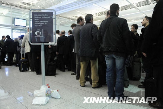 圖1:1月20日,旅客在德國慕尼黑機場內排隊等待。慕尼黑機場當日下午在一名男子手提電腦中發現疑似爆炸物,警方隨即關閉了2號航站樓部分區域,造成約133個航班推遲或取消。當天晚上機場逐步恢復正常運營。新華社/法新