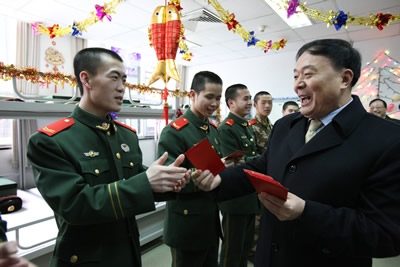 圖:2010年2月14日年初一,民航局局長李家祥在北京首都機場慰問民航一線員工。