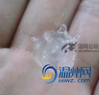 圖1:18下午,溫州龍灣下起了冰雹,直徑接近1厘米。高速、機場均有受到影響。(本圖由網友提供)