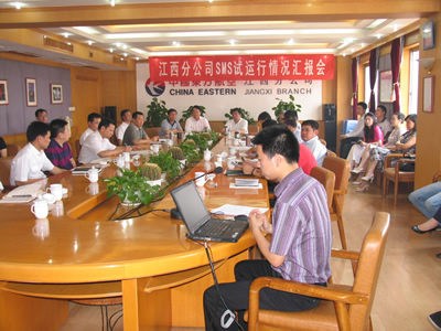 中國民航新聞信息網通訊員 彭建華 報道:"經過近30天的集中脫產辦公,總體上按總部要求完成了和正在完成著各項試運行任務,分公司危險源信息總庫已經建成,先后發布三份安全風險通告,今后SMS用到的多種工作程序文件基本編寫完成……"5月31日上午,東航江西分公司召開SMS試運行工作進展情況匯報會,安技部所做的工作進展情況報告得到了分公司全體領導班子成員和各運行單位負責人的熱情關注。