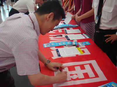 南航北方分公司副總經理呂長春在橫幅上簽字
