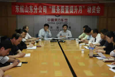 中國民航新聞信息網 通訊員陳華振報道:6月13日,東航山東分公司“服務質量提升月”動員會在青島東航大廈舉行,東航山東分公司黨委書記杜冬升、副總經理李貴山、黨委副書記兼紀委書記丁欣出席會議。分公司青島飛行部、維修部、客艙部、市場部、保衛部領導和代表及企管部、黨工部、人力資源部負責人參加會議,分公司濟南地區各單位通過視頻參加會議,會議由分公司企管部吳國林經理主持。