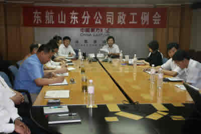 與會人員觀看《大責無界 大愛無疆》東航玉樹抗震救災宣傳片 東航山東分公司召開第三次政工例會 中國民航新聞信息網 通訊員 孫大帥 陳華振報道:6月24日上午,東航山東分公司在青島東航大廈13樓會議室舉行“加強學習型黨組織建設”主題政工例會。分公司黨委書記杜冬升、黨委副書記兼紀委書記丁欣出席會議,分公司各直屬黨組織負責人、分公司機關各部室主要領導、基層各單位黨辦(綜合辦)主任參加了本次政工例會,分公司濟南地區各單位通過視頻參加會議,會議由分公司黨委工作部臧素翃部長主持。 分公司黨委杜冬升書記作總結講話 分公司基層黨組織進行學習型黨組織交流