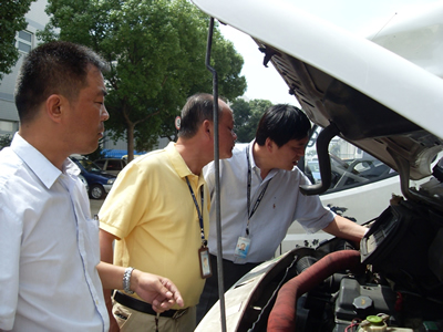 為客艙部機供品部員工每天出車前進行車輛例檢(黃金興/攝) 為客艙部機供品部領導進行車輛安全檢查(黃金興/攝) 中國民航新聞信息網 通訊員金洪霞報道:多雨的梅雨季節一過,迎來的就是炎熱的夏季高溫季節。