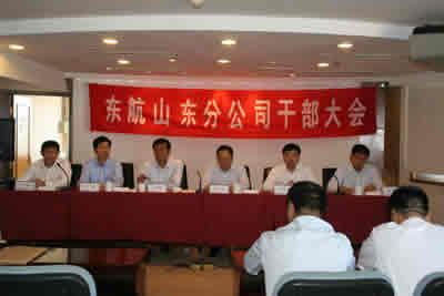 中國民新聞信息網 通訊員王曦報道:2010年7月7日上午9點,東航山東分公司在青島東航大廈12樓會議室召開干部大會,宣布分公司干部人事任命。東航股份公司黨委副書記秦亞平、東航股份公司黨委工作部部長袁駿、東航股份公司人力資源部副經理劉成出席大會。東航山東分公司總經理吳中東、黨委書記杜冬升、副總經理范建軍、副總經理李貴山、黨委副書記兼紀委書記丁欣、工會主席吳蔚及分公司各大單位主要領導,機關各部室主要負責人、科級以上干部參加了此次大會,分公司濟南地區、煙臺營業部干部以視頻形式參加大會,大會由分公司黨委丁欣副書記主持。