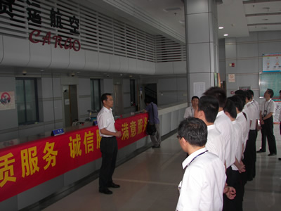 儀式上,“鳳翔”班組組長代表“鳳翔”班組向基地各窗口部門員工宣讀了倡議書。倡議作為展示國貨航文明最前沿,也是國貨航品牌建設(shè)排頭兵的窗口部門員工積極行動起來,把“優(yōu)質(zhì)服務(wù)、規(guī)范服務(wù)、誠信服務(wù)、滿意服務(wù)”滲透到工作和服務(wù)的每一個環(huán)節(jié),用行動表達(dá)情感,傳遞愛心,傳播文明,喜迎世博、亞運。隨后基地各窗口部門員工代表分別結(jié)合本崗位工作闡明了對服務(wù)工作重要性的理解,做出了服務(wù)承諾。基地一線窗口部門員工紛紛在印有“優(yōu)質(zhì)服務(wù)、規(guī)范服務(wù)、誠信服務(wù)、滿意服務(wù)”的橫幅上簽名,表明了提高個人服務(wù)水平,促進(jìn)基地整體服務(wù)質(zhì)量提升的決心。