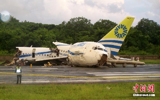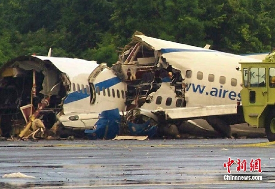 圖2:一架載有131人的客機16日在哥倫比亞圣安德烈斯島降落時遭雷擊墜毀,斷為三截。中國新聞網圖片 圖3:一架載有131人的客機16日在哥倫比亞圣安德烈斯島降落時遭雷擊墜毀,至少1人死亡,多人受傷。中國新聞網圖片