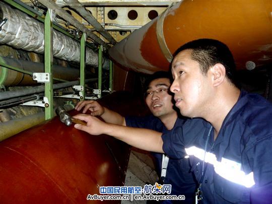 2010年8月15日,南航新疆分公司的757-200型B-2823號機(jī)在定檢中發(fā)現(xiàn)在貨倉STA1480處固定引氣管的兩個支架全部斷裂,需要更換損壞的支架。這架飛機(jī)按生產(chǎn)計(jì)劃在第二天就要投入航線運(yùn)行。然而航材庫存沒有現(xiàn)成更換件,在結(jié)構(gòu)工程師的方案中需要制作板彎件來完成修理。入秋以來天氣炎熱,,在貨倉里空氣不流通,溫度高達(dá)40度,悶得人喘不過氣來,感覺像是被塞進(jìn)高壓鍋里,汗水順面而下浸濕工作服。損傷支架的拆除-制作-安裝,全過程不知道反反復(fù)復(fù)多少次,飛機(jī)維修基地定檢二車間工程師張偉帶領(lǐng)技術(shù)骨干陳新國、石明高和楊世勛用高度的責(zé)任心,用汗水,出色完成了APU引氣管固定支架的更換工作。