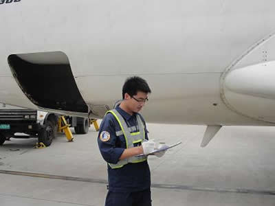 李廣東在進行航后檢查 技術組值班組長曲忠先在和機組溝通 6分隊帶班組長朱圣偉以身作則按卡作業
