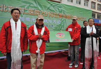 中國民航新聞信息網訊:海航集團·北京同仁醫院2010“甘肅光明行”活動于9月8日在甘肅省甘南藏族自治州夏河縣正式啟動,全國防盲指導組組長、北京同仁醫院院長韓德民,甘肅省人民政府副秘書長張正鋒、甘肅省衛生廳副廳長王曉明,甘南藏族自治州政府副秘書長卓瑪加、夏河縣副縣長楊曉梅,海航集團副董事長兼首席執行官王健,海航集團高級執行副總裁折益寧,海航機場集團執行董事長兼總裁劉璐,甘肅機場集團董事長孟凡生等海航駐甘企業代表、10名海航志愿者以及當地宗教界代表共同出席了在夏河縣廣場舉行的啟動儀式。