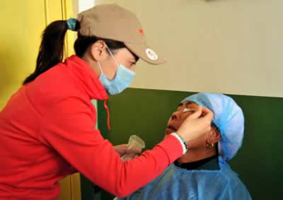 韓德民院長,張正鋒副秘書長和王健副董事長共同為“甘肅光明行”揭牌 據介紹,此次活動的主題是“播撒光明、踐行大愛”,是主辦單位積極響應世界衛生組織提出的“視覺2020,消滅可避免盲”全球戰略目標和全國防盲規劃做出的具體行動。海航集團將通過與北京同仁醫院合作,為夏河等地的白內障患者進行免費手術,并為貧困醫院贊助防盲醫療手冊,宣傳普及用眼保健知識。截至9月9日上午,此次活動醫療組已為66名當地患者施行了復明手術。 海航志愿者協助醫療隊為患者進行術前眼部清洗 據了解,中國是世界上盲人最多的國家,而且患者大多分布在西部邊遠貧窮地區,很多人因為致盲導致家庭貧困,生活困難。多年來,海航集團以“愛黨愛國、舉業為民、感恩社會、和諧發展”為宗旨,踐行“為社會做點事,為他人做點事”的企業理念,熱心西部地區公益事業,積極踐行企業社會責任。自2004年啟動“海航—青藏高原10年光明行動”以來,海航集團計劃在2004年-2013年間,出資500萬元,為2000名白內障患者購買人造晶體,并由北京同仁醫院和全國防盲技術指導組為白內障患者治療。截至目前,海航集團攜手北京同仁醫院已先后在青海班瑪、玉樹,西藏拉薩、日喀則、林芝,四川理塘,內蒙古、甘肅等地開展“光明行”活動,為超過3000名各族白內障患者送去了光明。 同仁醫院醫護人員為患者進行術前眼部檢查