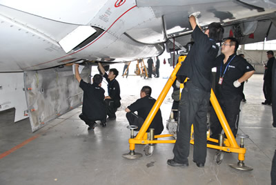 在兩節(jié)到來之即,山西維修部對飛機發(fā)動機、起落架、飛行操縱、通信導航等關鍵系統(tǒng)加大了普查力度,對現(xiàn)存故障、缺陷、保留故障及遺留工作進行了梳理、匯總和評估,尤其對多發(fā)性、重復性和季節(jié)性故障給予了高度重視,制定出了應對方案;同時科學、合理安排生產(chǎn)任務,細致調(diào)配飛機,制定了應對臨時加班或出現(xiàn)航班不正常時的處置預案,有計劃地錯開兩節(jié)航班高峰時段安排飛機停場檢修,最大限度地為公司節(jié)日保障提供充足運力。以確保節(jié)日期間生產(chǎn)有序開展,機務保障平穩(wěn)實施,安全規(guī)章貫徹落實。