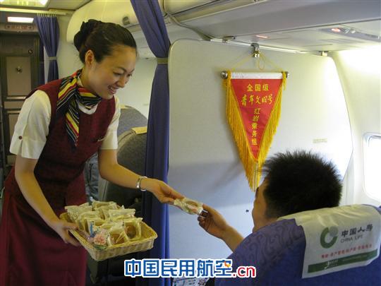 國航重慶分公司紅巖乘務組開展機上慶中秋活動