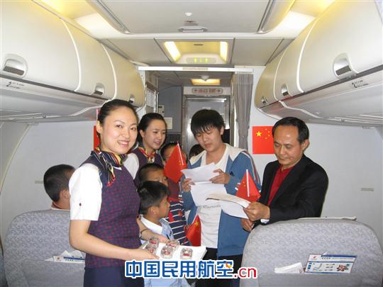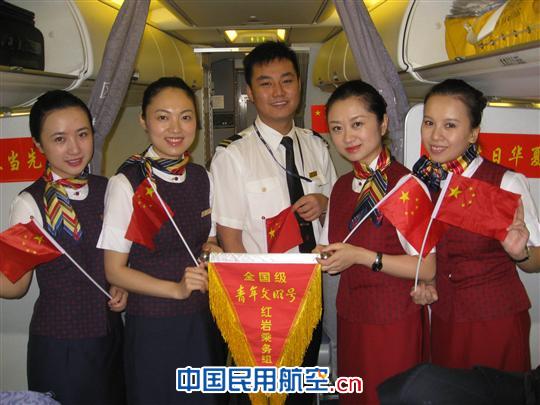 據悉,為以更加有意義的方式共慶祖國61歲生日,紅巖乘務組結合當下全黨、全國正在深入開展的創先爭優活動,在CA4543航班上開展了主題為“祖國生日齊歡慶 創先爭優國富強”的機上特色活動。 餐飲服務完成后,紅巖乘務組稍事準備便拉開了活動的帷幕。首先,乘務員們為150多名旅客發放了國旗。接著,乘務員邀請數名旅客代表一齊朗誦了詩歌《國慶,這個日子讓我對你說》,以表達對祖國的祝福。 紅巖乘務組認為,祝福的話表達的是對祖國母親的良好祝愿,但祖國的發展更需要認真的工作來實現。于是,作為全國青年文明號十年成就獎的獲得者,紅巖乘務組接下來率先許下了創先爭優的承諾——“我們將用心做好每個航班的服務工作,一定認真踐行紅巖的服務目標:用心溫暖航程、服務超越期待”,并在大大的題板上簽下了全體組員的名字。此舉得到了旅客的積極響應。他們紛紛在題板上寫下了對祖國的祝福以及自己對祖國的承諾。他們表示,要用踏實的工作和無私的奉獻來實祖國的繁榮富強。 隨后進行的“我為祖國唱支歌”的環節將活動推向了高潮,一支支熟悉的旋律在客艙響起。大家用歌聲歌唱祖國,用樸實的話語送出對祖國發自心底的祝福,抒發了共和國的兒女們對祖國母親的心聲,唱出了兒女們為有一個堅強的祖國母親而自豪的贊歌。最后,在乘務組的提議下,整個慶祝活動在《歌唱祖國》的大合唱中圓滿結束。 國旗揮舞,歌聲滿艙,響徹藍天。紅巖乘務組以精心的準備和滿腔的熱忱,和天南海北的旅客一起度過了一個非常有意義的國慶節。旅客們紛紛在留言本上題詞:“生逢太平盛世,更感謝祖國母親,祖國,我以你為榮!”、“感謝祖國!感謝國航!感謝紅巖乘務組!”。