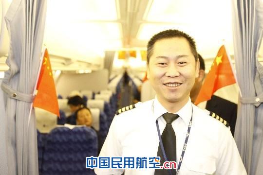 乘務員們在客艙里布置了小國旗,營造出濃濃的國慶節氣息。攝影:任春山