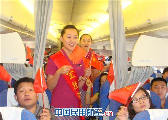 航班上還舉行了有獎競猜活動,機(jī)艙中紅旗飄揚(yáng),氣氛熱烈,旅客們積極參與活動,并紛紛寫下意見卡,表示能在國慶時(shí)在飛機(jī)上參加這樣的歡慶活動,感到非常的難忘,這次乘機(jī)是一個(gè)美好而難忘的旅途!