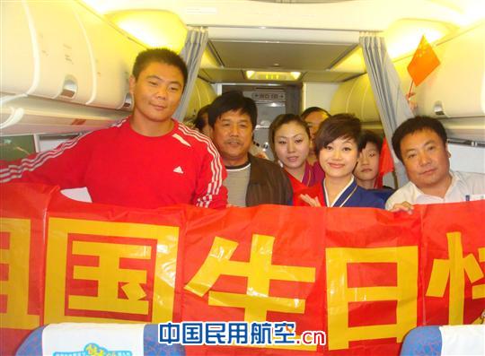隨著乘務(wù)長 “今天是祖國建國61周年的喜慶日子,讓我們共同祝福它國泰民安、繁榮昌盛、明天更輝煌!我們在國慶佳節(jié)之際,祝大家節(jié)日快樂!”的話音一落,客艙內(nèi)頓時(shí)響起熱烈的掌聲。