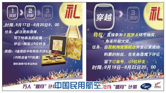 昆航微博截圖 從微博粉絲到昆航“微IP”,從機票咨詢到旅客服務,昆航新浪微博,正從一扇小小的窗成長為一道敞開的門,微笑著迎接四方來客。推開門,讓我們一起來看看昆明航空為網(wǎng)友們準備了哪些新鮮好玩的微博互動游戲。 小小明信片遙寄感恩情 每當這個特殊的日子,我們總會想起從小到大教導過我們的老師,他們在我們成長的每一階段,都如同友善的向?qū)В诔砷L的道路上給予我們正確的指引。曾經(jīng)青澀稚嫩的我們,如蒲公英般奮斗在城市的每個角落,每天朝九晚五,辛苦忙碌,在遠離了校園之后,教師節(jié)這個特殊的日子,我們能做的,也許僅是懷念一下恩師的教誨,或是發(fā)一條祝福的短信。 9月初,昆明航空官方微博策劃并發(fā)起了“師恩難忘,昆航代你寄祝福”活動,通過微博征集粉絲對恩師的感恩祝詞,評選出10位最感人、最精彩的微博,代粉絲們給恩師寄去遠方的問候。活動一經(jīng)推出,得到了粉絲們的熱烈響應和支持,大家紛紛在昆航微博搭設的感恩平臺上抒發(fā)對恩師的懷念和感恩,從小學到中學、大學,一幕幕感人經(jīng)歷被粉絲們描述著,那些一直珍藏在內(nèi)心的感動,被激發(fā)出來,粉絲們的留言和轉發(fā)將活動推向了高潮。9月10日當天,我們精心挑選出11條感恩留言,為這11為粉絲的恩師寄去了昆航微博特別為本次教師節(jié)活動設計制作的三款精美明信片。用我們的手,寫下粉絲們對老師的祝福,娟娟筆記道出內(nèi)心難忘的恩情。昆航微博管理員們粘貼好郵票,親自將粉絲們的明信片送到郵局。這些明信片,經(jīng)從昆明插上愛的翅膀,飛往祖國各地,寄給每位粉絲心中念念不忘的恩師。其中有一位在昆工作的粉絲,他的母親也曾經(jīng)是自己的老師。幾天后,當我們替他寄出的明信片被遠在安徽的母親收到時,他接到了母親欣慰的電話,并立即向昆航表示了由衷的感謝。 昆航微博為教師節(jié)特別設計制作的明信片 在這個互聯(lián)網(wǎng)時代,深處鋼筋水泥包裹的城市,人與人之間的交流多是靠電話、短信、網(wǎng)絡,一張小小明信片,握在手中,會是不一樣的溫暖實在。昆航微博用一顆真誠的心,讓一個小小的想法喚起人們內(nèi)心的感念,用老師教我們的文字,寫下對老師的感恩。當我們看到粉絲們的感謝留言,在心底快樂地微笑,昆航微博是您最“織”心的朋友。 昆航微博登月號,奏響中秋狂想曲 中秋佳節(jié),本是舉家團聚的日子,但倘若有這樣一個航班,能帶我們逃離地球,開始一次精神之旅,放飛忙碌疲憊的身心,哪怕只是一場天馬行空的幻想,你愿意和我們一道同行嗎? “中秋佳節(jié),逃離喧囂浮華的地球,拋開一切的煩惱;萬人登月,搭乘心靈的諾亞方舟,盡享闖關的樂趣。”昆明航空官方微博針對中秋節(jié)舉辦的萬人登月計劃,吸引了微博上眾多粉絲的參與。 中秋微博“登月”計劃部分環(huán)節(jié)宣傳廣告 作為微博概念營銷的一次嘗試,昆航微博的管理員們通過頭腦風暴策劃了這樣一趟虛擬航班——“登月號”,邀請網(wǎng)友們許下心愿,傳遞祝福,給大家一個機會,抒發(fā)內(nèi)心最真實的向往,和我們一起開始浪漫的旅程。昆航“登月號”艙門將于9月22日20點關閉,在此之前,“旅客”們需要通過筑夢(中秋許愿)、啟航(中秋送福)、穿越(昆航淘寶旗艦店購票)、圓夢(分享假日計劃)等一輪一輪的任務,爭取經(jīng)濟艙、假日艙、綠色艙、頭等艙所帶來的特色服務——精美的昆航小飛機模型以及中秋特色月餅禮盒,最終與我們在萬人矚目的“登月號”相遇。 活動發(fā)起后,從9月15日到9月22日的時間里,我們的微博的粉絲從約7800人增長至約9200多人;筑夢環(huán)節(jié)評論571+轉發(fā)547,啟航環(huán)節(jié)評論834+轉發(fā)771,圓夢環(huán)節(jié)評論107+轉發(fā)114,分別創(chuàng)開博以來最熱門微博前五名;不斷有“感謝昆航”、“祝福昆航”、“支持昆航”的字眼在微博評論中出現(xiàn)……粉絲的大力支持和關注讓我們的登月之旅熱情高漲。 隨后,從第一輪筑夢環(huán)節(jié)抽獎,到第二輪啟航環(huán)節(jié)抽獎,再到圓夢環(huán)節(jié)的終極抽獎,在8天、192小時、11520分鐘、691200秒鐘的時間里,我們抽取了9位幸運粉絲,并送出了5架昆航16cm機模,3盒昆航中秋特色月餅禮盒和1張昆明-版納往返套票,對近萬名長期以來支持和關注昆航微博的粉絲們表示中秋佳節(jié)最真誠的感恩和祝福。 盡管中秋之夜微博粉絲數(shù)未能突破萬人目標,但本次概念營銷的嘗試,突破了傳統(tǒng)微博抽獎活動的單一性,活動中融入艙位等級、登機牌、航班號等航空元素,通過情結化和差異化讓航空公司的特征更加明顯,層層深入,實現(xiàn)了三環(huán)節(jié)活動劇情的連貫和完整,獲得了粉絲持續(xù)的關注和支持。通過與昆航淘寶旗艦店通力合作,策劃“穿越”環(huán)節(jié)——憑淘寶訂單號直接參與終極抽獎,對昆航淘寶旗艦店也起到了一定的推廣作用。 登月環(huán)節(jié),適逢中秋之夜,終極圓夢的效果沒有超越“筑夢”和“啟航”帶來的高潮,但我們仿佛看到那些微博上最真誠的愿望和祝福,都已經(jīng)在現(xiàn)實中實現(xiàn),放下工作,停下匆忙的腳步,粉絲們的團圓和幸福就是我們最大的滿足感和成就感。 中秋之夜,拋開都市的喧囂和浮躁,這場虛擬“萬人登月”場景在我們閉上眼睛的一剎那浮現(x