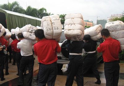 準備裝運的救災物資 早上7點,海航集團與海軍南航部隊共同組織安排的第一批8輛救災車輛從海口出發,帶著大米、礦泉水、棉被等災區急需物資分別開赴文昌、瓊海、萬寧等地。 10月9日晨,海航集團支援海南暴雨災區救災物資整裝待發2 據悉,截至當天中午,海航集團向海南省瓊海市捐贈的大米20噸、礦泉水2700箱、棉大衣1000件、棉被500條和方便面500箱;向萬寧市捐贈大米10噸、礦泉水42000瓶;向文昌市捐贈價值20萬元的棉被和礦泉水等物資均順利抵達災區。 海航地產員工與南航部隊官兵共同裝載救災物資 海航集團常務執行副總裁劉軍春、南航部隊后勤部部長田占欣等向前往一線實施捐助的人員發表了動員講話。據了解,該批物資是截至目前海南暴雨災區接收到的最大一批企業捐贈物資。 9月30日以來,海南遭受了自1961年以來的最大暴雨,島內大面積受災,數百萬居民生產生活受到嚴重威脅。面對突如其來的災害,作為海南本土企業,海航集團積極配合海南省委省政府開展防汛救災工作,迅速采取各項措施應對強降雨災害。在確保海口、三亞兩地機場正常運行的同時,海航義務通過航班運送島外救災物資至海南,并要求旗下在瓊企業全力以赴協助各市縣人民政府做好抗災救災工作。海航地產作為海航集團唯一實現海南全島聯動的企業,確保了抗災救災信息的及時、準確傳遞,迅速組織訂購救災物資,聯系運輸車輛保障,承擔起了執行此次捐助的重要任務。 據悉,海航集團的其他相關救援行動正在積極籌備中。