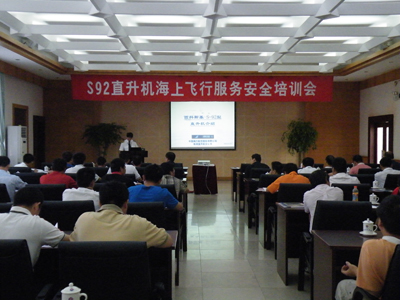 作為中海油海上鉆井平臺(tái)飛行服務(wù)商,該公司針對(duì)近期投入使用的大型直升機(jī)S92的性能特點(diǎn)和安全技術(shù)要求,決定對(duì)"乘客"--平臺(tái)工作人員進(jìn)行一次飛行服務(wù)安全培訓(xùn),進(jìn)一步規(guī)范乘客"在平臺(tái)上上、下客"的程序及有關(guān)注意事項(xiàng),以確保飛行和人員安全。圖片為該公司海上飛行服務(wù)安全培訓(xùn)現(xiàn)場(chǎng)。