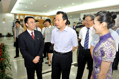 中國民航新聞信息網 通訊員 高彬彬 陳海云報道:10月14日,在黨的十七屆五中全會即將勝利召開之際,團中央書記處第一書記陸昊來廈門調研黨建帶團建暨共青團創先爭優工作,聽取了廈航及廈門其他29家企業共青團負責人的工作匯報,對在廈企業的黨建帶團建及共青團創先爭優工作提出了指導性意見和要求。福建省廈門市領導、共青團福建省廈門市領導專程陪同視察。