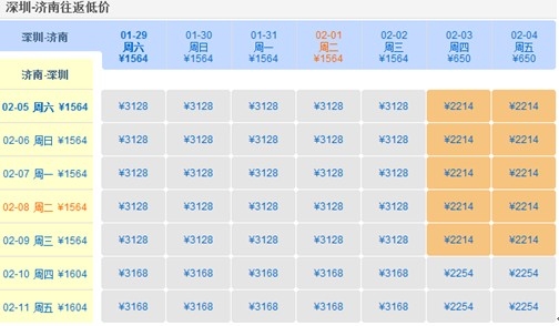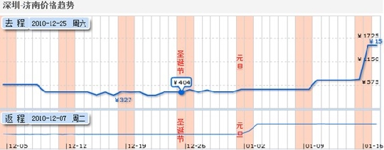 記者從全球最大中文在線旅游網站去哪兒網(Qunar.com)機票價格數據了解到,由于受寒假學子返鄉、元旦小假期和春運的三重影響,一月份的機票價格環比十二月份暴漲50%,而春節期間,熱門航線的價格均高高掛起,平日里一片片的低價機票仿若隱形,幾乎銷聲匿跡。 那么如何才能成為春運大軍中的幸運兒,購買到方便又實惠的低價機票呢? 第一招 勤看價格趨勢 越臨近春節,價格波動越大,要掌握價格走向,可以多利用去哪兒網提供的機票價格走勢分析圖以及機票價格日歷。這兩個小小的工具可以幫助用戶清楚地了解從今日起至春節期間的價格走向,洞悉價格波動規律。例如下圖: 從圖中可以清楚看出,深圳至濟南的機票價格波動在圣誕節與元旦前后都有小小的提高,而越臨近春節,價格便呈現暴漲的趨勢。 預訂往返程的用戶還可以利用機票價格日歷: 機票價格日歷可以方便預訂往返程機票的用戶選擇更加優惠的日期出行。例如圖中所示,選擇黃色區域的日期出行,往返程機票都是最優惠的。 第二招 提前預約 機票淘得不費勁 去哪兒網機票搜索提供低價機票預約,這個功能從上線以來一直都受到廣大用戶的青睞。由于條件都是由用戶提供,信息及其精密,每次有符合用戶條件的機票信息都將第一時間通知用戶,比如將信息發送至手機短信或者用戶指定的郵箱。 建議大家在預約機票時不要只單獨設定一個條件,一個折扣,可以多設置幾個日期段與折扣點,那么收獲到的信息也更加廣泛。而不會因為條件太少而找不到可代替的機票產品。 這樣一來,用戶不需要頻繁刷屏,時時呆在電腦旁,就可以輕松的獲取自己想要的低價機票信息。預約到的機票,第一時間購買,真可謂“尋尋覓覓,尋尋覓覓,竟不費吹灰之力”。 第三招 往返程一起買,便宜又有保障 去哪兒網在2010年十月份首推往返程特價包,受到了廣大用戶的歡迎,不僅僅能省去用戶許多麻煩,還能享受到航空公司許多便利條件。據去哪兒網機票產品部高級總監楊威介紹,春節期間返鄉往返程一起買有諸多的好處: 首先,往返程一起買,用戶在預訂時只需填寫一次個人信息,一次性支付,非常方便;另外,比如需要行程單的旅客,只需支付一次快遞費,也能夠節省成本。 其次,往返程一起購買更加有保障,不會出現買了到回程票,去程票又漲價等這些突發情況,使得用戶產生損失。 楊威表示,往返程一起買可以讓用戶淘到更加便宜機票的幾率增加50%。更重要的是許多單獨的低價票,航空公司都有非常嚴格的限制條件,比如不能退改簽之類的,造成若用戶臨時行程有改變,會帶來不小的損失。然而這種往返程票,大部分時候航空公司還給予更多的退改簽的便利,極少有完全不能退改簽的情況。 除此之外,楊威表示,“每年春節均是返鄉大潮,許多一線城市比如北京,上海一到春節,城市人口明顯減少許多。從北京飛往各地的機票都是水漲船高,而從其他城市飛往北京的機票價格卻相當的便宜。目前看到北京飛往各地的機票價格春節的報價幾近全價,而且座位緊張,但是各城市飛往北京的機票卻折扣多多。因此,面對春運大軍,今年不如反其道而行,比如把爸爸媽媽接到北京來過年。既能合家團圓,又能省去不少費用。”