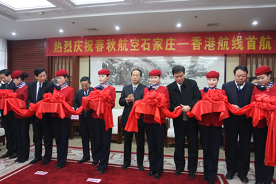 在當天舉行的首航儀式上,副省長宋恩華宣布春秋航空公司石家莊-香港航線首航,省政府副秘書長于萬魁、河北機場管理集團總經理張彥杰、春秋航空公司董事長王正華分別致辭,省國資委副主任韓志遠出席了首航儀式。