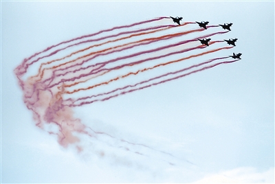湛藍的天幕,戰鷹呼嘯,或雷霆霹靂,或舞姿翩躚;藍天下,一張張酡紅的臉,閃爍著興奮的華光,不想放過空中芭蕾的任何一個細節……藍天下,碧海邊,特技飛行大秀云端的那一刻,是許許多多的珠海人對航展最難忘的記憶。
