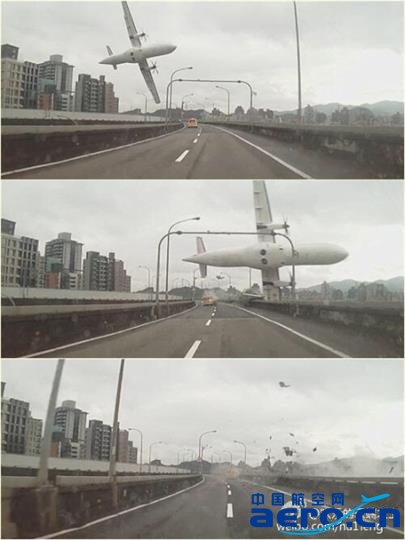GE235航班疑似因為“重拉失敗”,沖撞環東高架橋,機身翻轉90度墜毀在南港經貿園區后方的基隆河,機身當場斷裂。從失事現場畫面上看,飛機機體在墜落過程中因撞擊地面建筑物,已經基本解體。