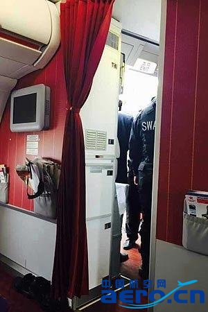 在爆料微博下,還配有6張圖片。圖片顯示,該飛機(jī)備降落地時(shí),機(jī)窗外停有紅色消防車,以及數(shù)十名身穿制服警察。