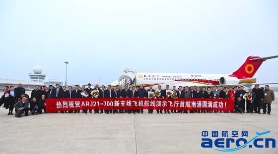 2015年3月16日,中國商飛(COMAC)ARJ21-700飛機在上海和天津之間執行了一次具有特殊意義的飛行,正式拉開了為期半年的航線演示飛行的序幕。中國商飛公司總經理賀東風,總會計師田民,副總經理吳光輝、劉林宗、趙越讓,成都航空負責人,中國商飛公司勞模團隊、員工代表和10名國內媒體記者搭乘首架次班機進行了體驗飛行。