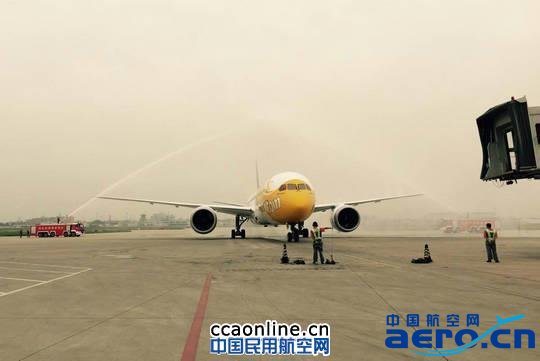 酷航波音787飛機(jī)飛抵天津機(jī)場