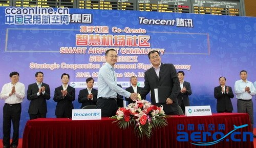 中國(guó)民用航空網(wǎng)訊:6月18日,上海機(jī)場(chǎng)(集團(tuán))有限公司與深圳市騰訊計(jì)算機(jī)系統(tǒng)有限公司正式簽署戰(zhàn)略合作框架協(xié)議,本著“共同發(fā)展、合作共贏”的原則,共同推動(dòng)“互聯(lián)網(wǎng)+”行動(dòng)在上海機(jī)場(chǎng)的推進(jìn),攜手打造全國(guó)首家“智慧機(jī)場(chǎng)社區(qū)”。