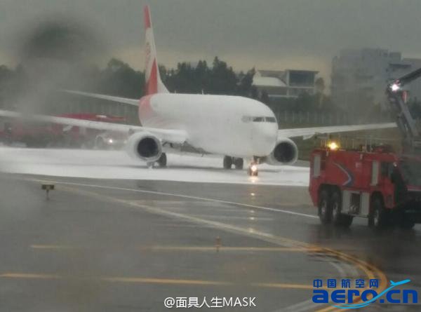 微博網友 @請叫思遠ouba神吐槽:國航飛機在跑道上馬上起飛,后面的涌泉大聲的告訴他右發著火,國航馬上關車報告了塔臺,不到2分鐘,8輛消防車狂奔趕到……正感嘆消防兄弟真效率,結果8輛消防車漂亮的走位圍住飛機,把一旁打醬油的涌泉給噴的飛機都看不見了~…………國航著急的要死,涌泉的罵的不要不要的……(注:福州航空呼號涌泉)。