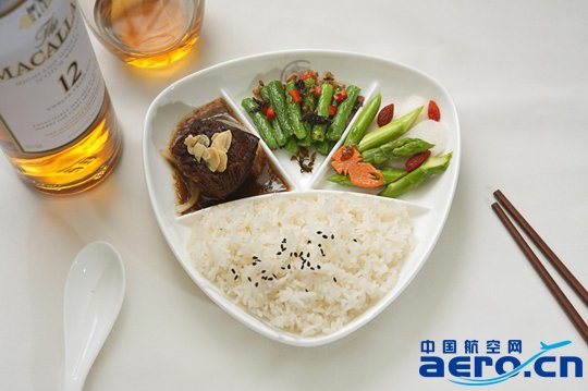 醬燜牛肋肉:此菜精選于筋肉相連,適于燒、燉的牛腹肉。牛肉富含蛋白質,氨基酸組成比豬肉更接近人體需要,能提高機體抗病能力,寒冬食牛肉更可暖胃。廚師通過使用西式紅酒并使用中式烹飪方法長時間燒制,使得醬汁醇香濃厚。