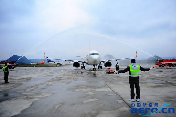 通訊員聶勇罡報道:12月15日11:17,揚子江航空首架客機順利從上海浦東國際機場抵達貴陽龍洞堡國際機場。貴陽機場舉行接機儀式,歡迎第36家航空公司入駐貴陽。