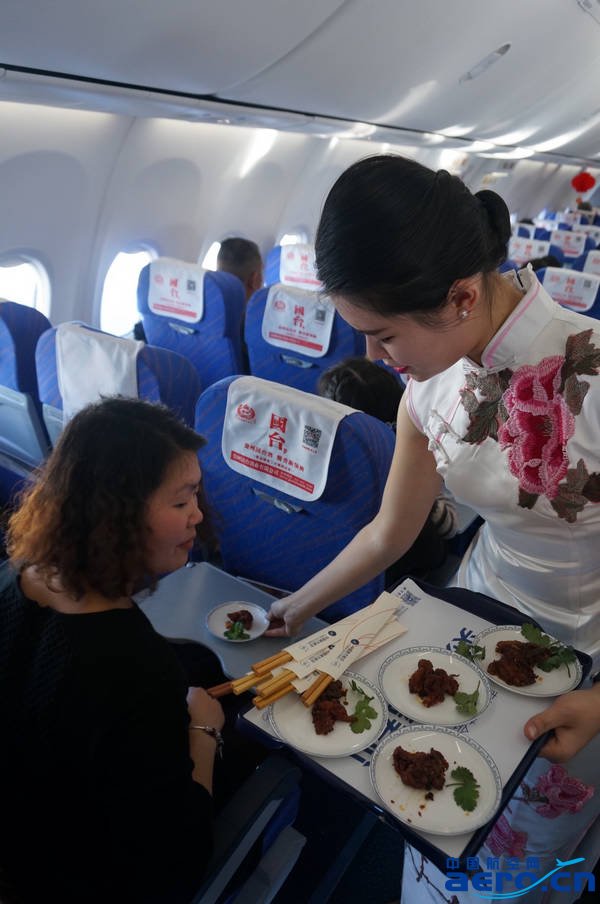 在“朋友圈”和網上經常看到一句話:唯愛與美食不可辜負。而過年怎么少得了美食?這不,身著苗族盛裝的南航空姐們已隆重出場:一雙雙纖纖素手為旅客遞上了一盤盤香氣四溢的黔味辣子雞,讓旅客感受到具有貴州特色的“年味兒”。
