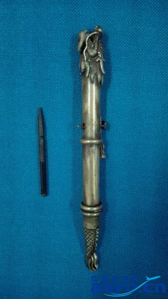 據(jù)悉,袖箭屬于古代的一種暗器,在生活中極為少見,一定距離內(nèi)對人有殺傷危險。經(jīng)觀察,該物品為銅制,雕刻以龍形,內(nèi)置彈簧,造型古樸精致,隨附有金屬箭頭,能夠擊發(fā)金屬弩箭。