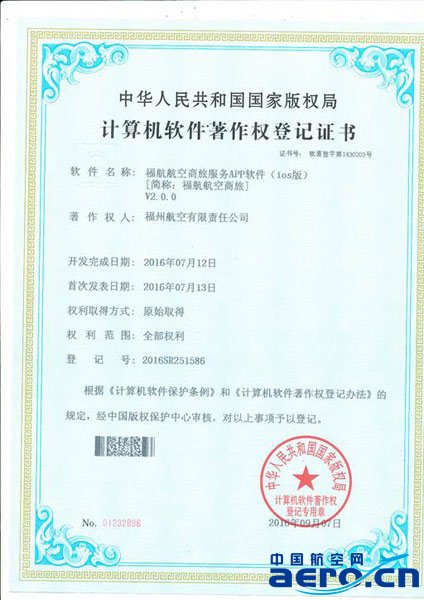 福州航空計(jì)算機(jī)軟件著作權(quán)證書(shū)(ios版)