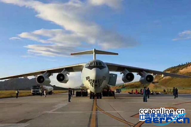 九寨機場停機坪上的軍方大型運輸機