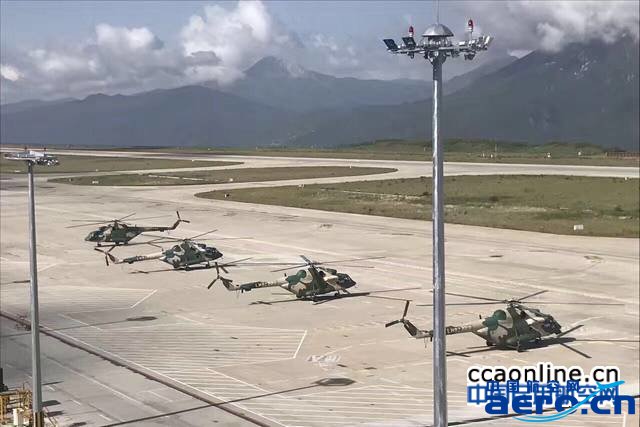 九寨機場停機坪上的陸航直升機