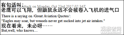 一名網友開玩笑表示,有句話叫“老鷹可以飛翔,但鼬鼠永遠不會被卷入飛機的進氣口”,如今看來未必呀……