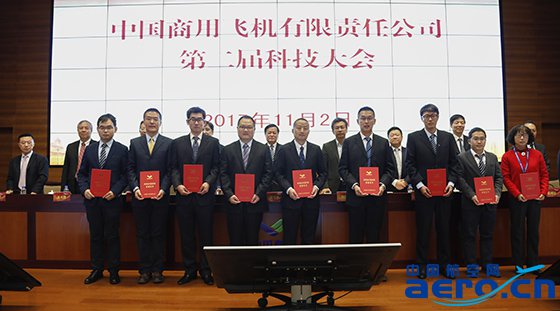 2017年11月2日,中國商飛公司召開主題為“科技引領發展 創新締造未來”的第二屆科技大會,深入學習貫徹黨的十九大關于新時代加強科技創新工作精神,總結公司近三年來科技工作,表彰先進,研究部署下一階段科技發展工作。