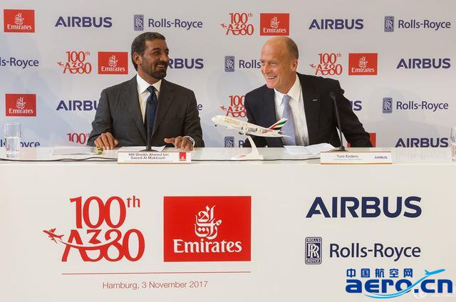 被稱作“土豪航空”的阿聯酋航空11月3日在空中客車位于德國漢堡的交付中心舉行隆重儀式,正式接收第100架A380客機。A380是目前世界上最大、最寬敞的客機,一架售價就有28.5億元人民幣。