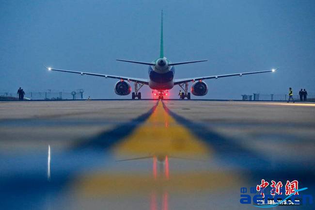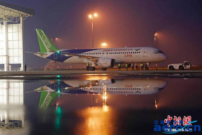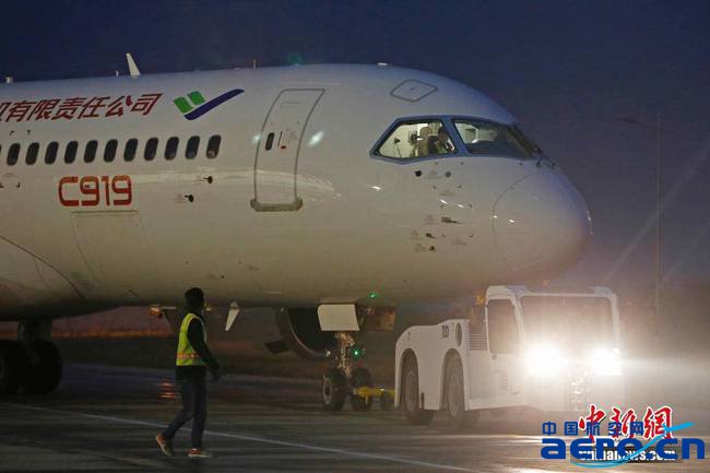 11月8日,中國商飛民用飛機(jī)試飛中心工作人員正在將飛機(jī)拖至指定區(qū)域。早晨7時(shí)46分,中國商飛C919客機(jī)從浦東機(jī)場第四跑道起飛,這是101架機(jī)第五次試飛。預(yù)計(jì)上午11時(shí)返回浦東機(jī)場。這是轉(zhuǎn)場西安閻良前的最后一次試飛。中新社記者殷立勤攝