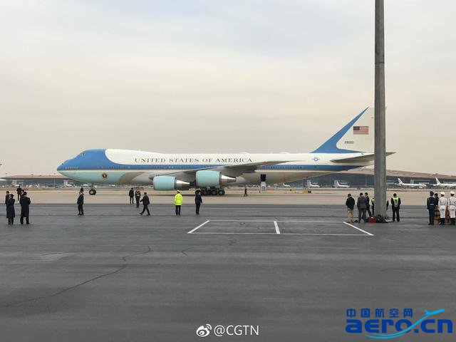 特朗普首次訪華 空軍一號已經抵達首都機場
