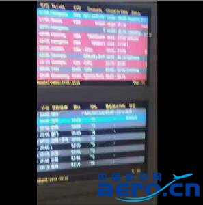 14日凌晨1點10分左右,政法頻道的記者在直播過程中也拍攝了此前航班的延誤情況,下圖中的紅色條目為延誤班機情況。由于直播畫質限制,圖片比較模糊。